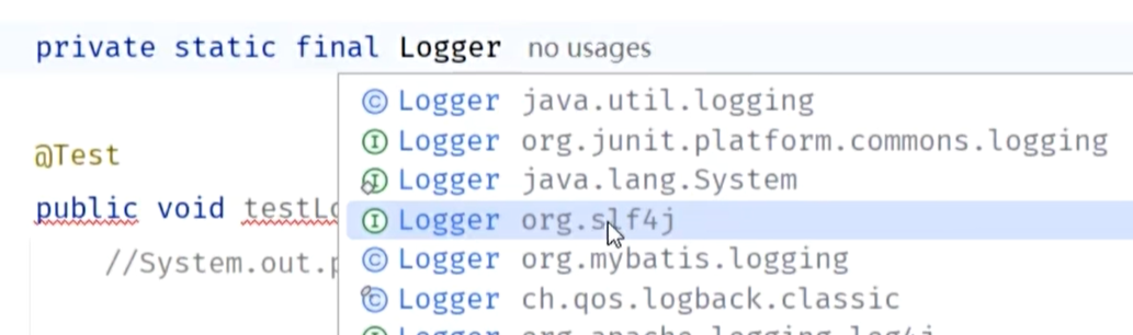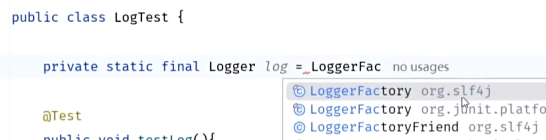 private static final Logger log = LoggerFactory.getLogger(LogTest.class);