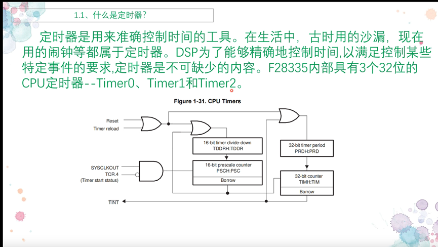 DSP28335 内置 3 个 32 位 CPU 定时器(Timer0/Timer1/Timer2),分工明确: