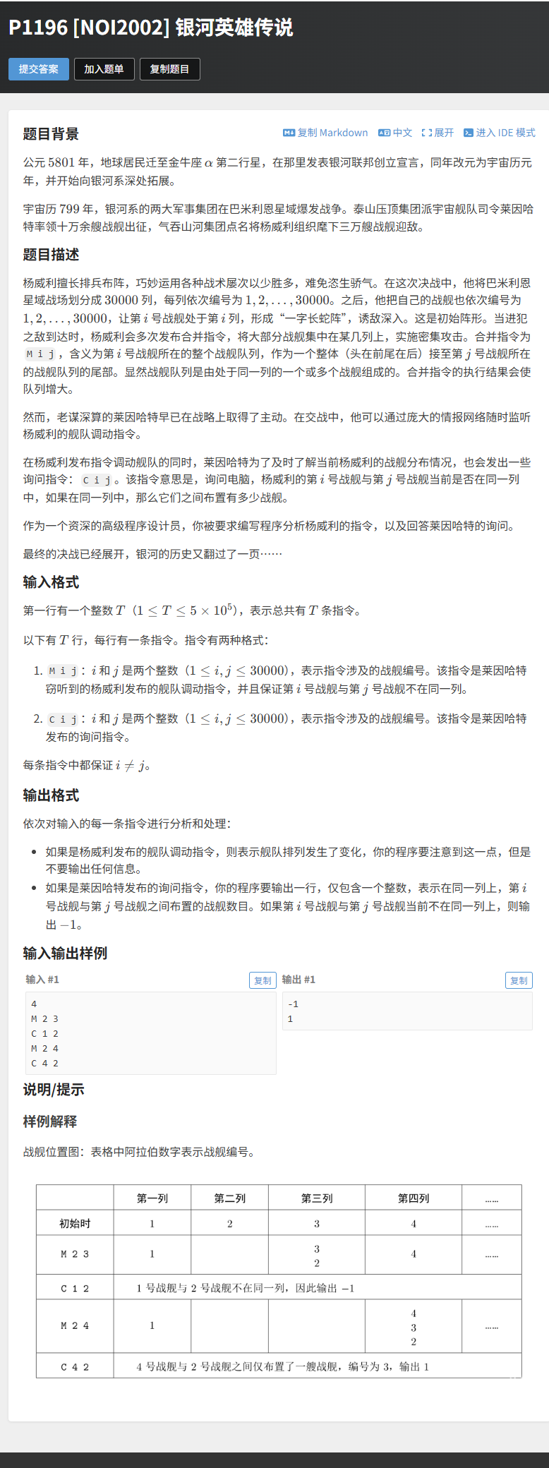 题目链接:https://www.luogu.com.cn/problem/P1196