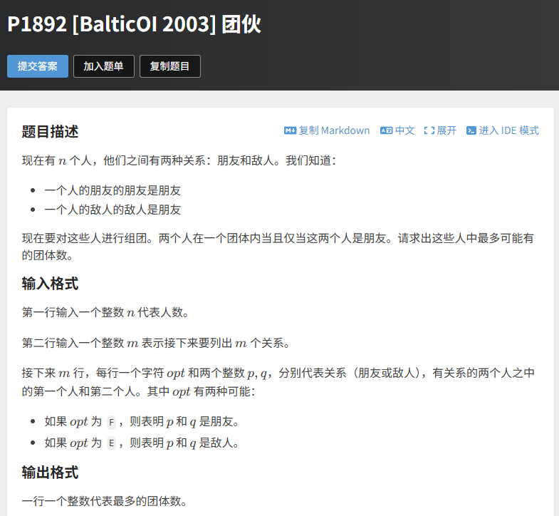 1.4 扩展域并查集实战 1:洛谷 P1892 团伙(朋友 - 敌人问题)