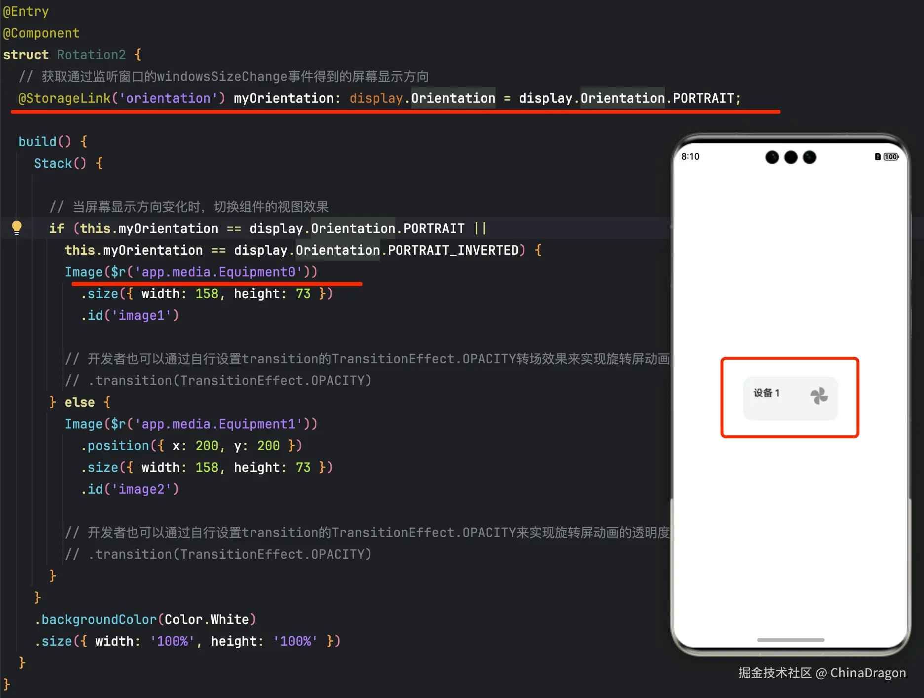 旋转屏动画主要分为两类:布局切换的旋转屏动画 和透明度变化的旋转屏动画,旨在实现屏幕显示方向变化时的自然过渡。布局切换的旋转屏动画实现较为简便,例如在module.json5中配置自动旋转(或设置窗口显示方向)即可实现。而透明度变化的旋转屏动画则需在module.json5配置的基础上,预备两套视图,在屏幕旋转时,通过视图切换,使消失的视图呈现渐隐效果,新出现的视图则渐显,从而营造流畅的视觉体验。