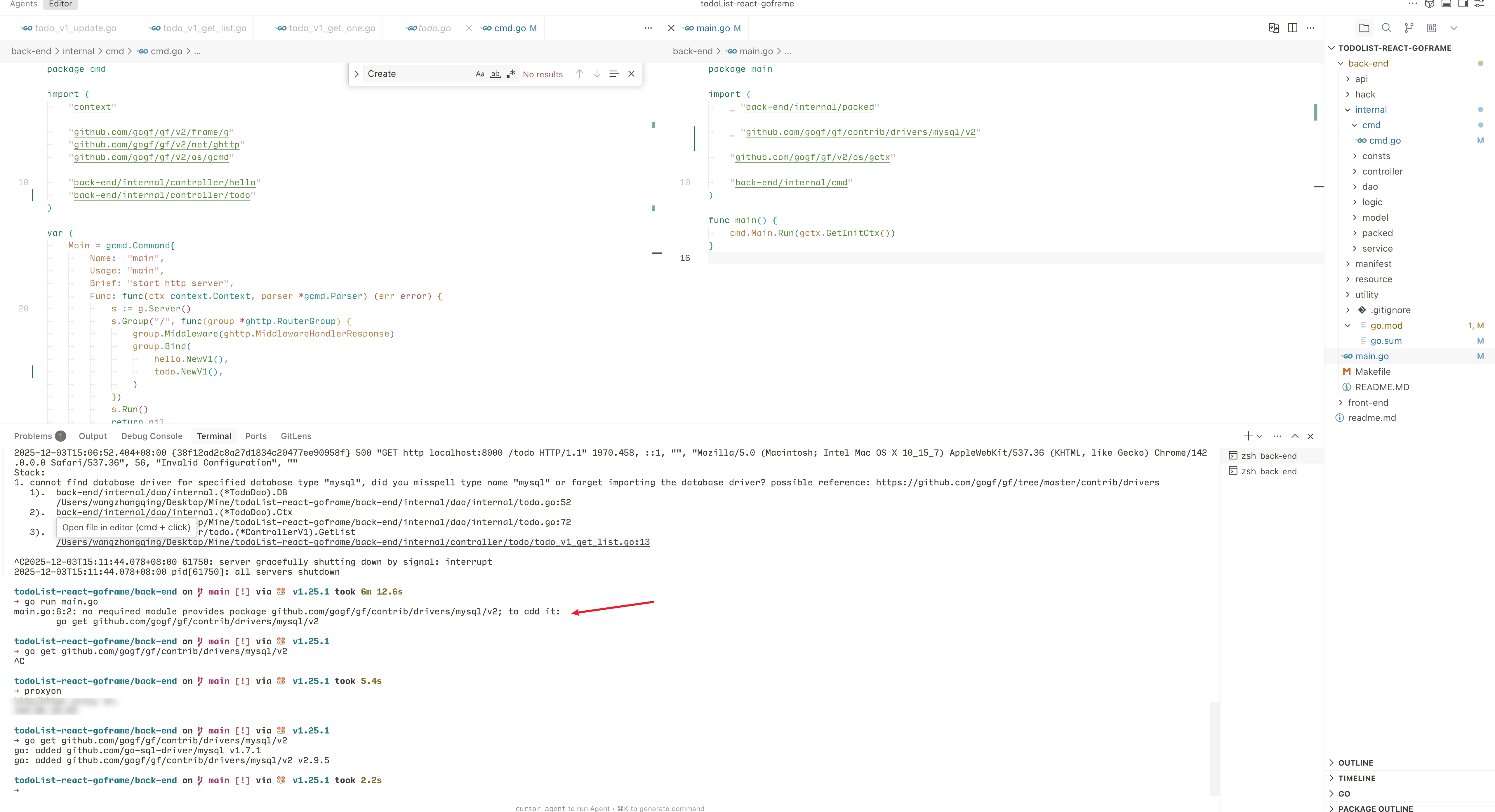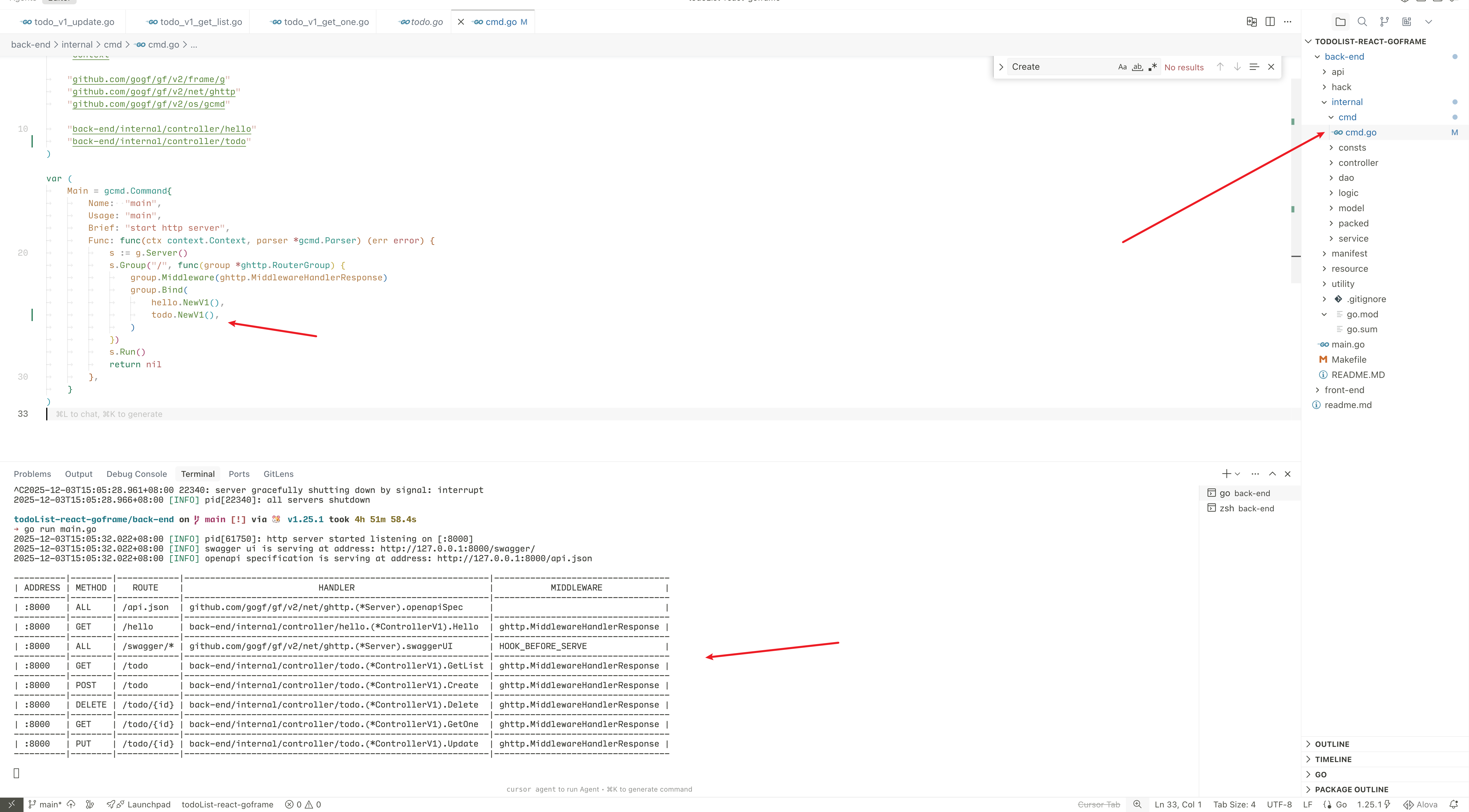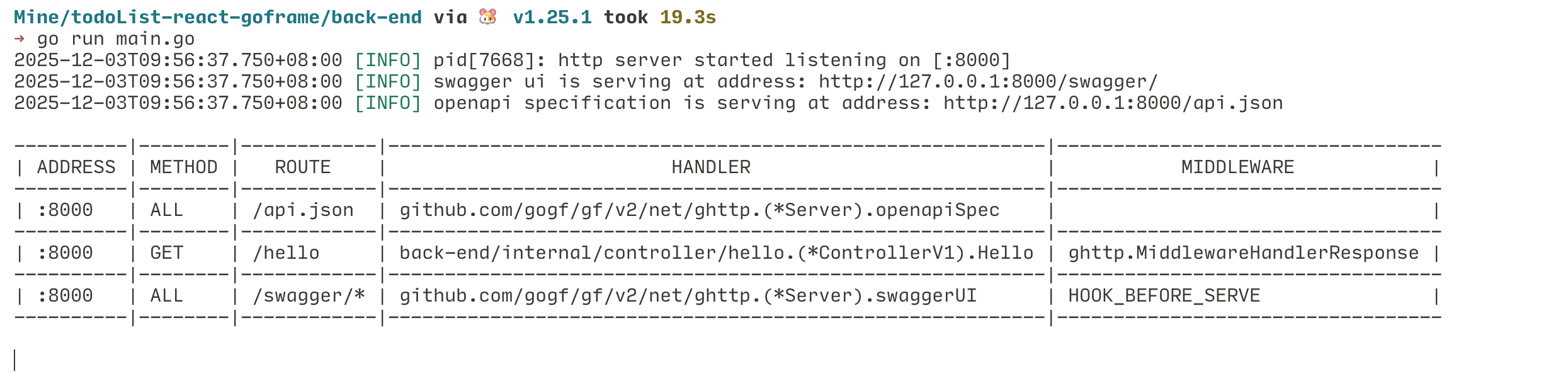 此时运行 go run main.go 就能跑起来项目了!
