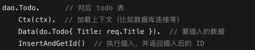 insertId, err := dao.Todo.Ctx(ctx).Data(do.Todo{
