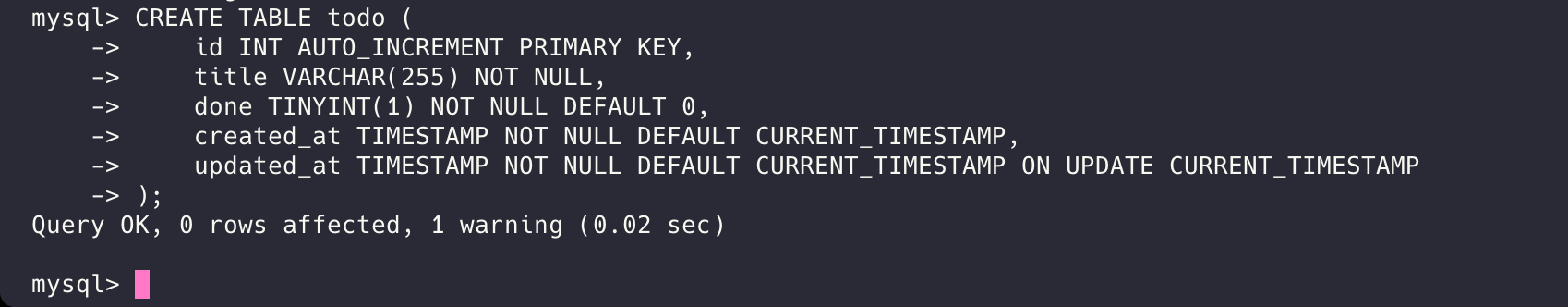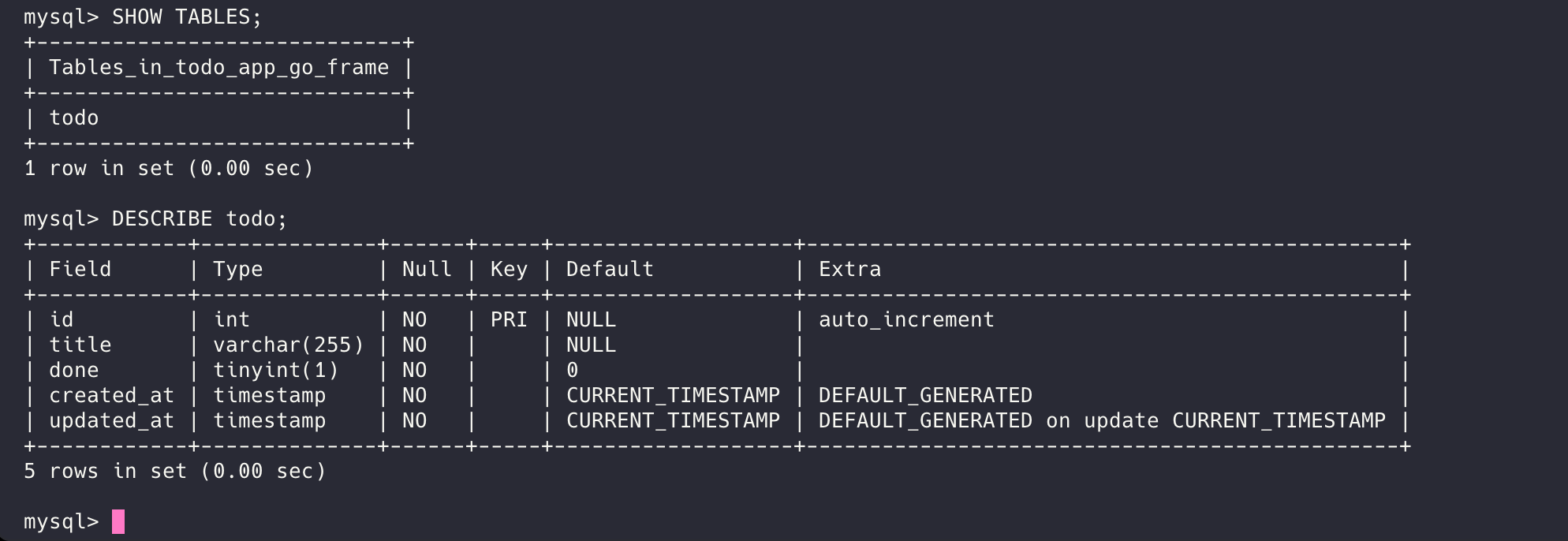 DESCRIBE todo;