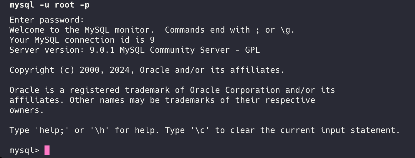 mysql -u root -p