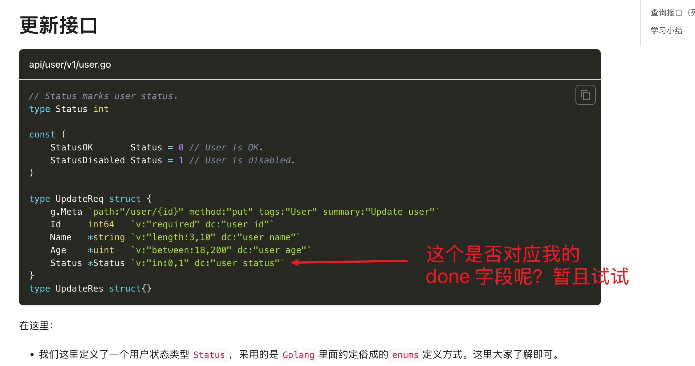 好的,增加和删除都好做,来到了更新,那么就有 done 这个字段,我该如何定义呢?