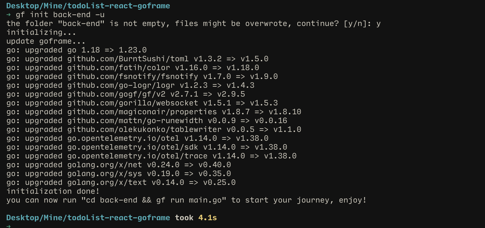 gf init back-end -u