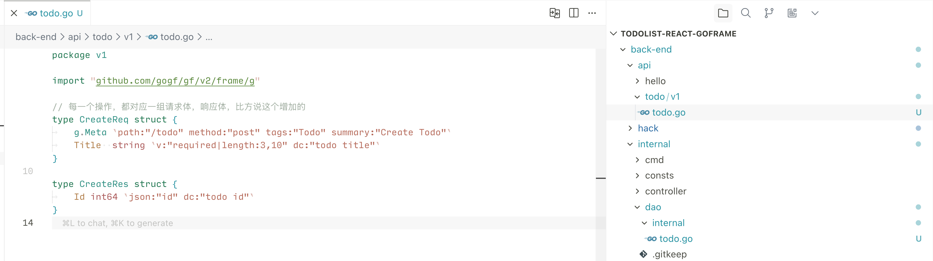 写好 api 之后,可以通过命令 make ctrl 生成基础的代码