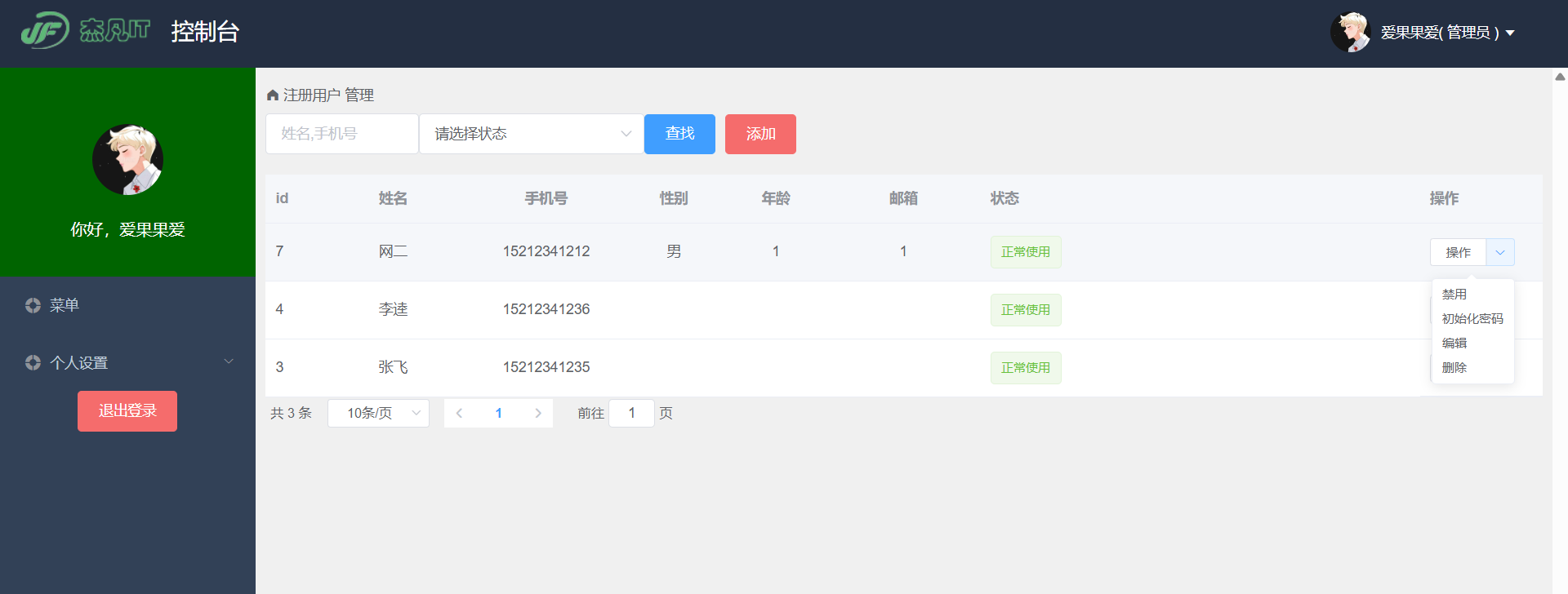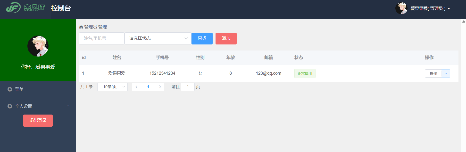 | role | varchar(255) | 角色 (admin:管理员, pt:普通用户) |