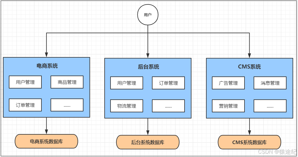 比如说一个电商系统,里面会包含很多用户管理,商品管理,订单管理,物流管理等等很多模块,
