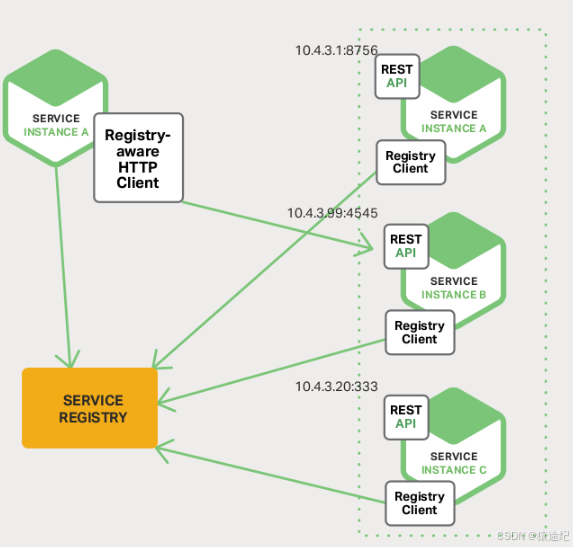 服务发现 :服务实例通过注册中心,获取到注册到其中的服务实例的信息,通过这些信息去请求它们提