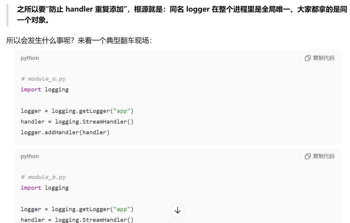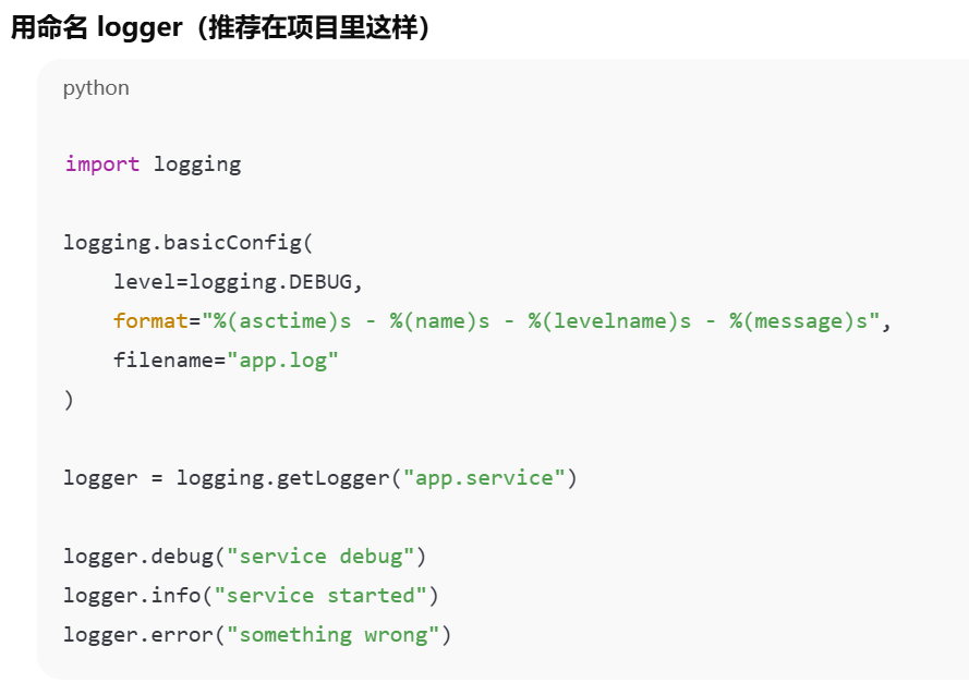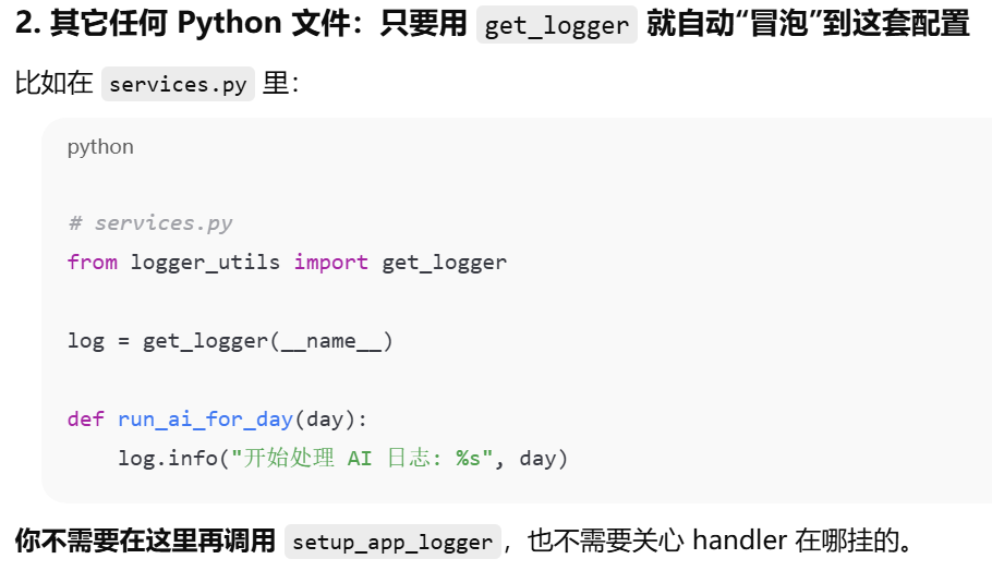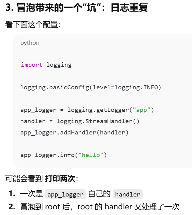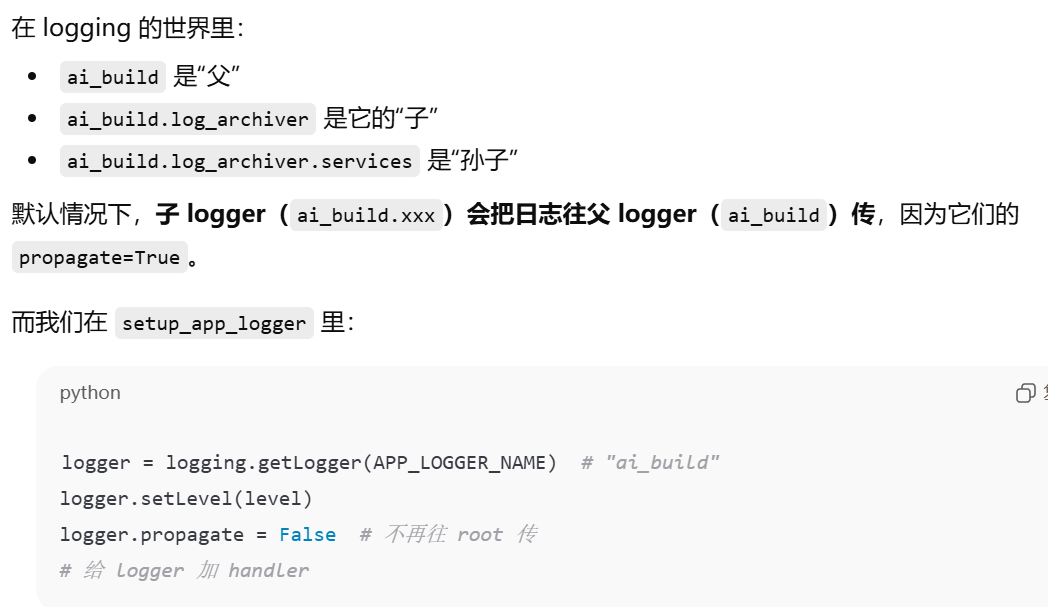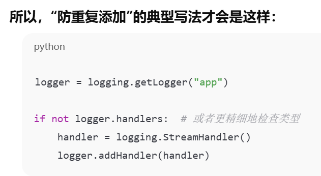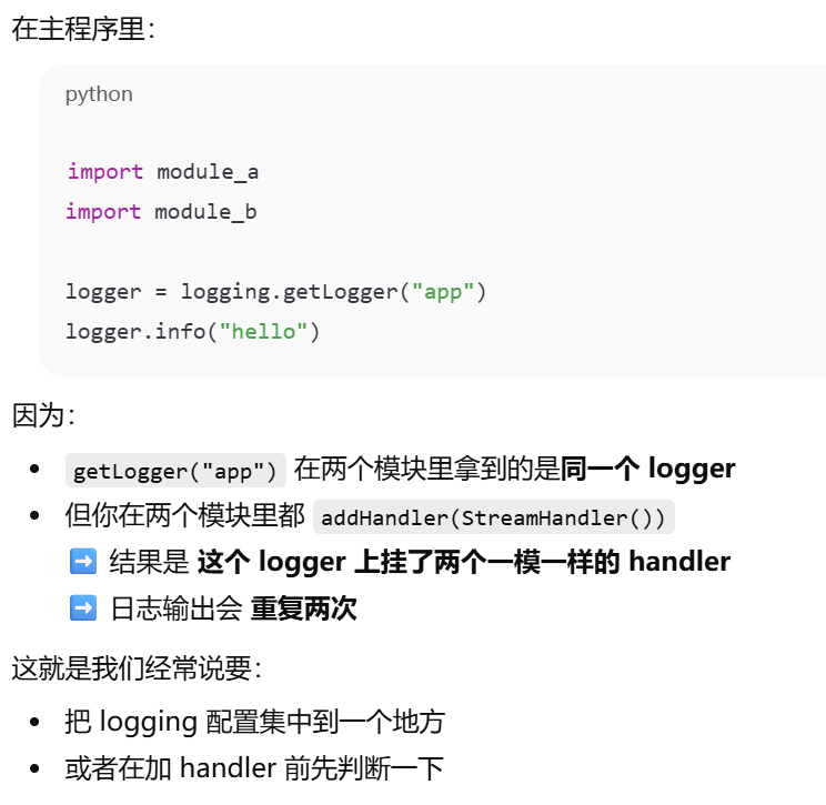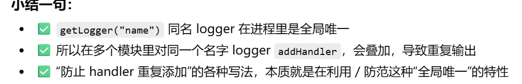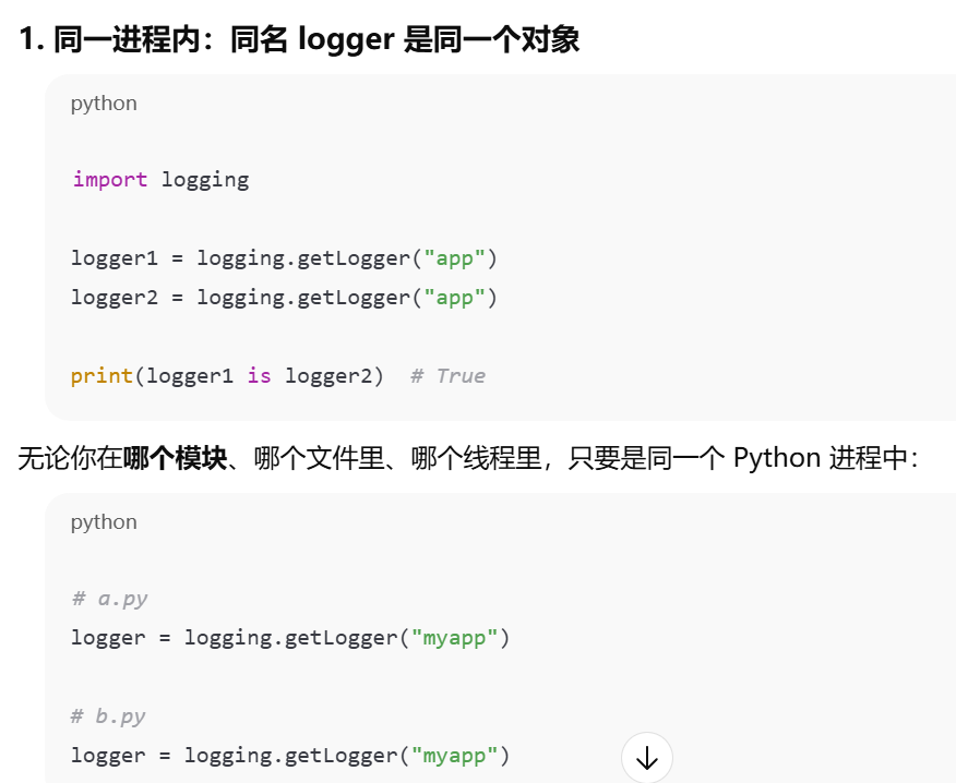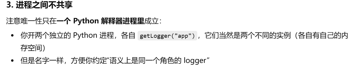 - [在同一个 Python 进程里,logging.getLogger("名称") 是"按名字全局唯一的单例"。进程间不共享](#在同一个 Python 进程里,logging.getLogger("名称") 是“按名字全局唯一的单例”。进程间不共享)