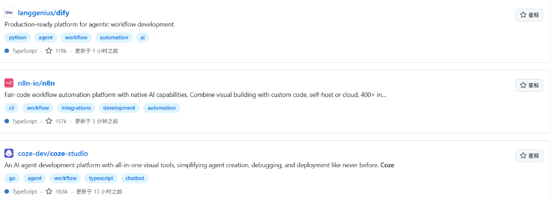 如果非要有一个客观的评判标准,那Github的star或许是较为客观的一种方式,n8n和dify这两个从出生就是开源的,coze是今年刚开源,从Github star数来看,n8n 157K排第一,dify紧随其后119k排第二,coze由于开源时间较晚只有18.6k。
