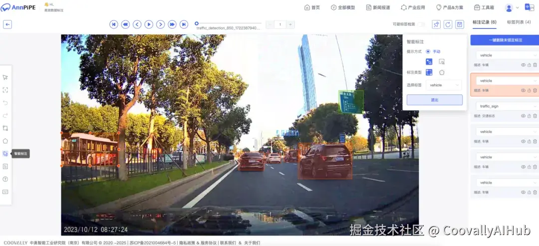 Coovally 不是一个单纯的数据标注工具,而是一个集模型训练与部署于一体的平台,在数据标注方面也提供了专业且高效的解决方案。其智能辅助标注功能支持用户使用已部署的模型对样本图片进行预标注,用户只需在此基础上进行微调,显著提升标注效率。