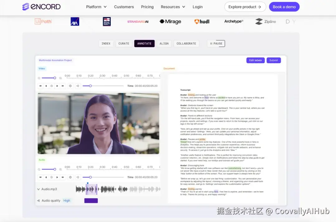Encord 在处理高复杂度或大规模数据集方面表现突出,适用于医疗影像、卫星数据、视频标注等多种模态场景。该工具支持自定义标注流程,配备专业审核与质量检测机制,并内置模型评估与监控功能,形成"标注-训练-反馈"闭环,适合生产级 MLOps 集成。