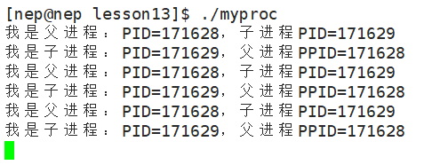 printf("我是子进程:PID=%d,父进程PPID=%d\n", getpid(), getppid());