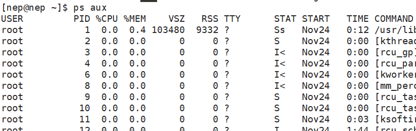ps aux:查看系统中所有进程的详细信息(包括其他用户的进程)