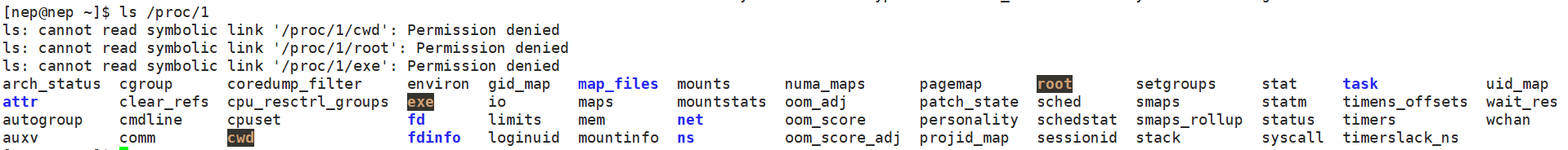 查看 PID 为 1 的进程(init/systemd)信息:ls /proc/1