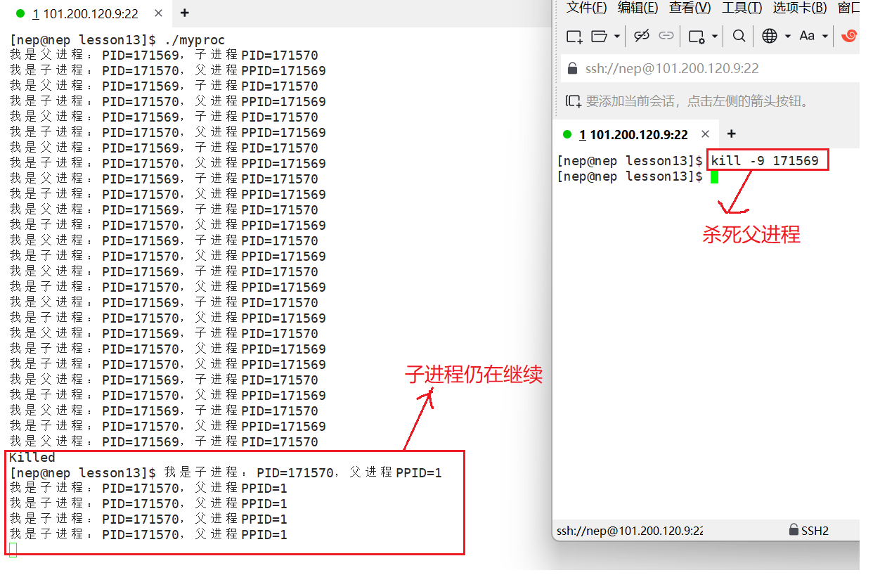 进程之间的运行是互相独立的,即使一个进程异常退出,也不会影响另一个进程的运行。例如,杀死父进程后,子进程仍然会继续运行(后续"孤儿进程"会详细讲解)。
