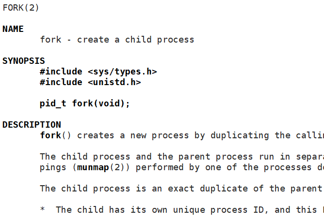 两个返回值: fork()是唯一会返回两次的系统调用: