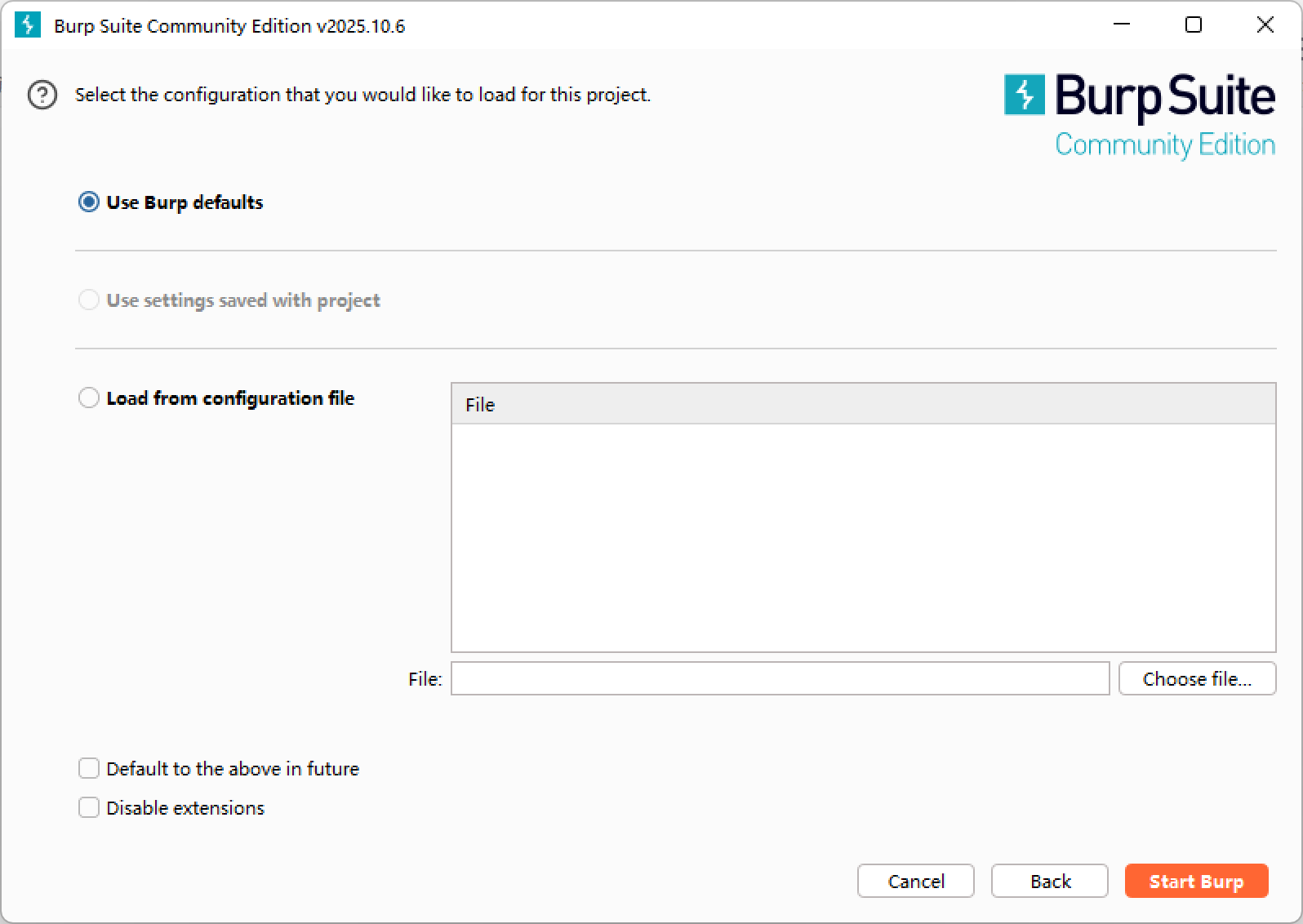 选择最适合新手的 Use Burp defaults(默认配置)就可以了