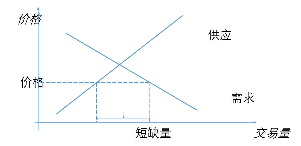 - 需求方反应:对于消费者而言,这个价格抑制了他们的购买欲望。他们只愿意购买一个较小的数量。