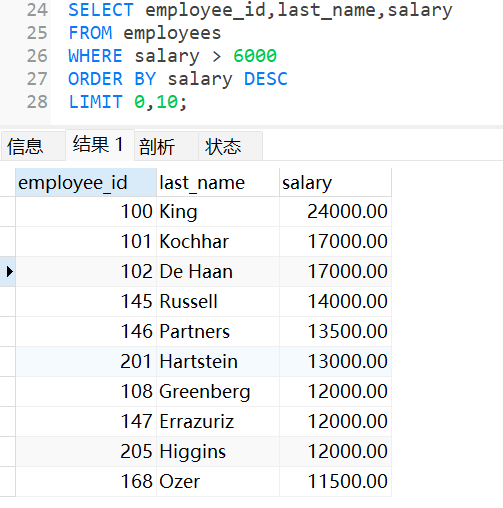 - SELECT 字段只是要显示的列,排序的列可以不出现在 SELECT 中