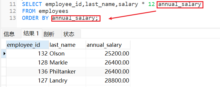 SELECT employee_id,last_name,salary * 12 annual_salary
