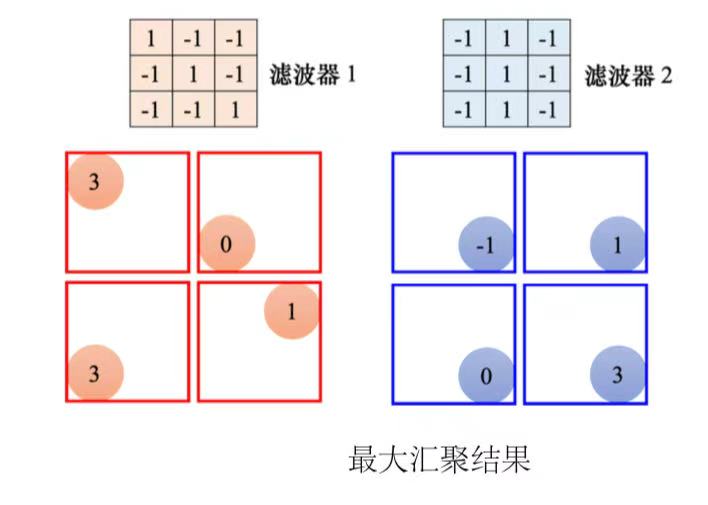 每个滤波器都产生一组数字,要做汇聚的时候,把这些数字分组,可以 2 × 2 个