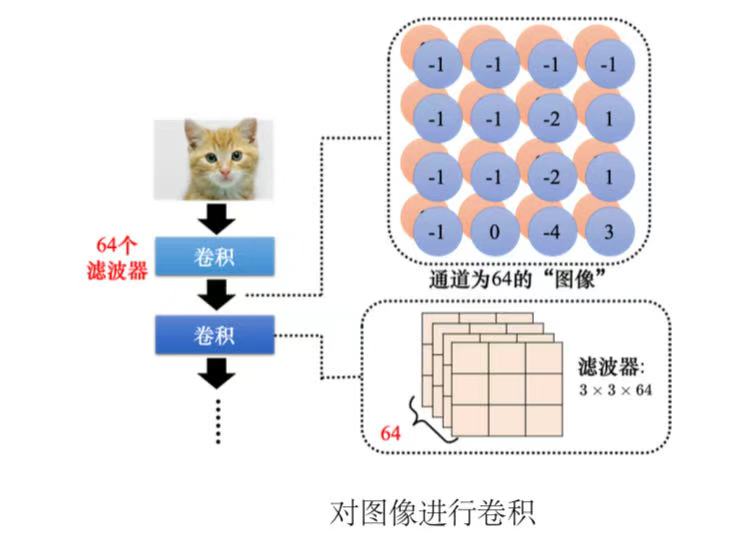 5、卷积可以叠很多层。下一层滤波器的高度是上一次滤波器的数量,因为滤波器的高度是它要处理图像的通道。