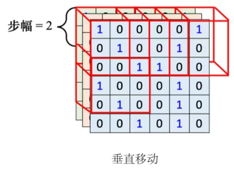 - 步幅(stride):感受野移动制造出新的感受野的移动量。