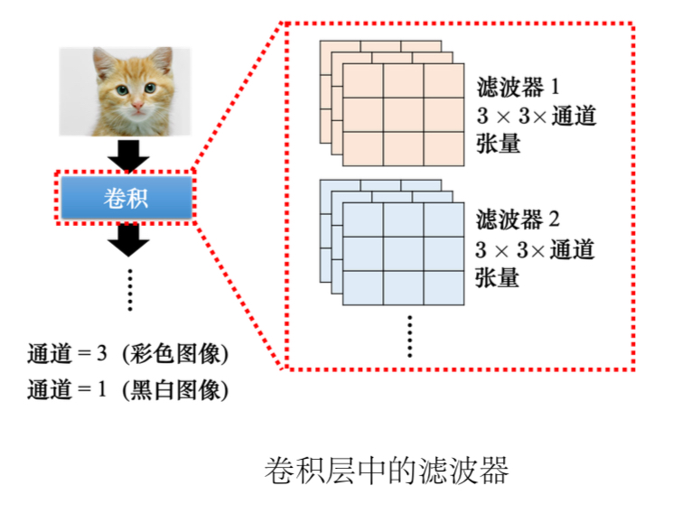 2、滤波器就是一个一个的张量,这些张量里面的数值就是模型里面的参数。这些滤波器里面的数值其实是未知的,它是可以通过学习找出来的。