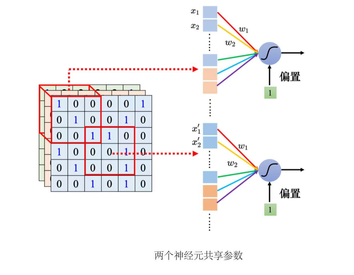 (1)共享参数(parameter sharing),即两个神经元守备的感受野不同,但是权重完全是一样的。