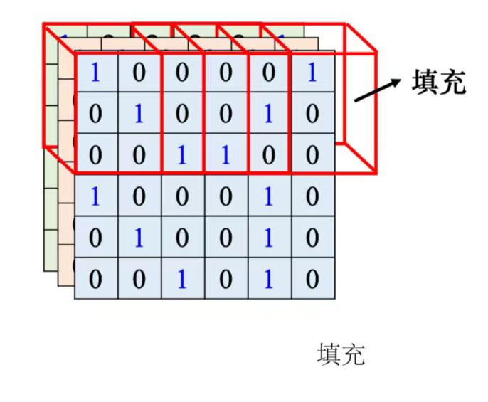 - 填充(padding):为超出图像范围的感受野补值,一般使用零填充(zero padding),也有别的补值的方法,比如补整张图像里面所有值的平均值或者把边界的这些数字拿出来补没有值的地方。