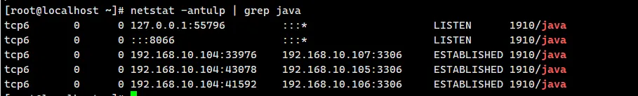 netstat -anpt | grep java #查看8066端口是否开启,默认端口为TCP 8066