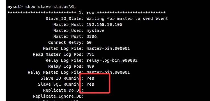在两个从服务器上执行 start slave; 即可实现同步在主服务器上添加的数据。
