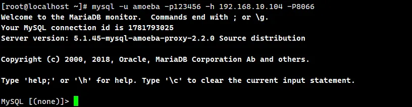 mysql -u amoeba -p123456 -h 192.168.10.104 -P8066