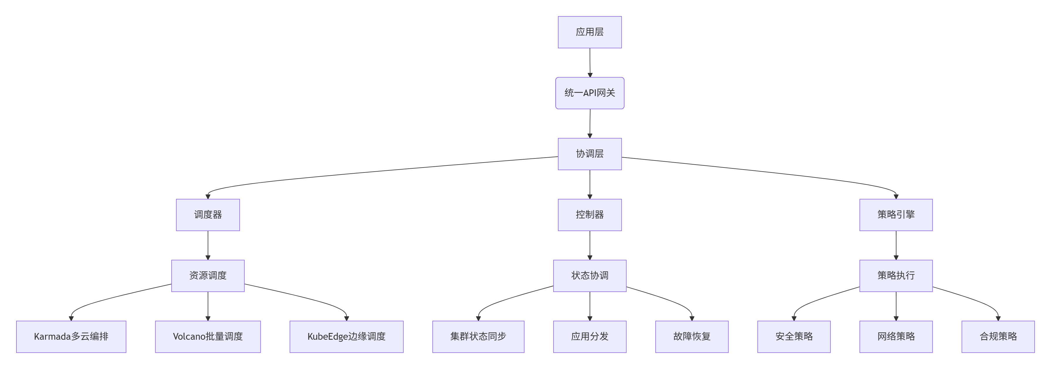 上游优先原则 是Kurator架构的基石。与许多试图重造轮子的平台不同,Kurator选择站在巨人肩膀上,深度整合Karmada、KubeEdge、Volcano、Istio等成熟项目。这种设计带来了生态兼容性 和持续创新动力,确保平台能够及时获得云原生领域的最新进展。