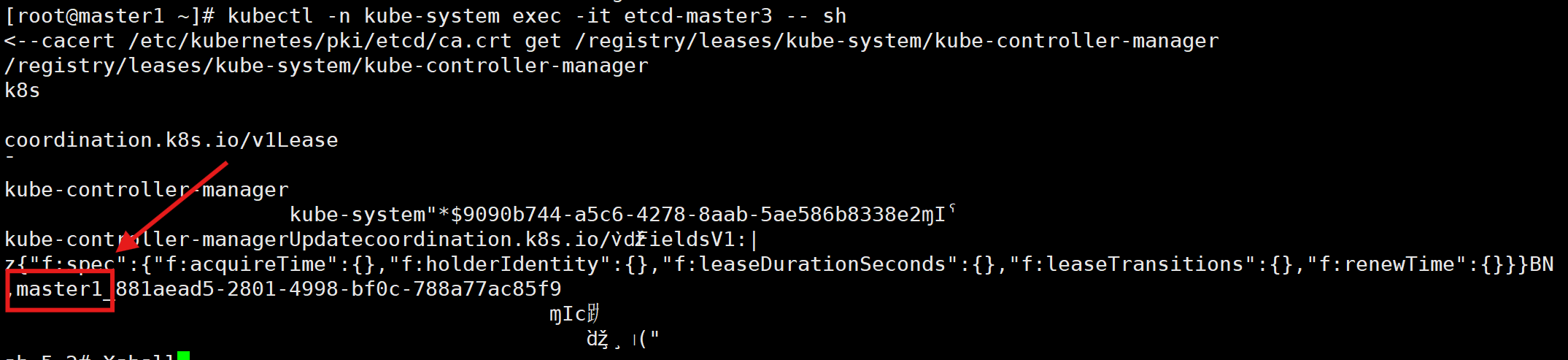 sh-5.2# etcdctl --endpoints https://localhost:2379 --cert /etc/kubernetes/pki/etcd/server.crt --key /etc/kubernetes/pki/etcd/server.key --cacert /etc/kubernetes/pki/etcd/ca.crt get /registry/leases/kube-system/kube-controller-manager