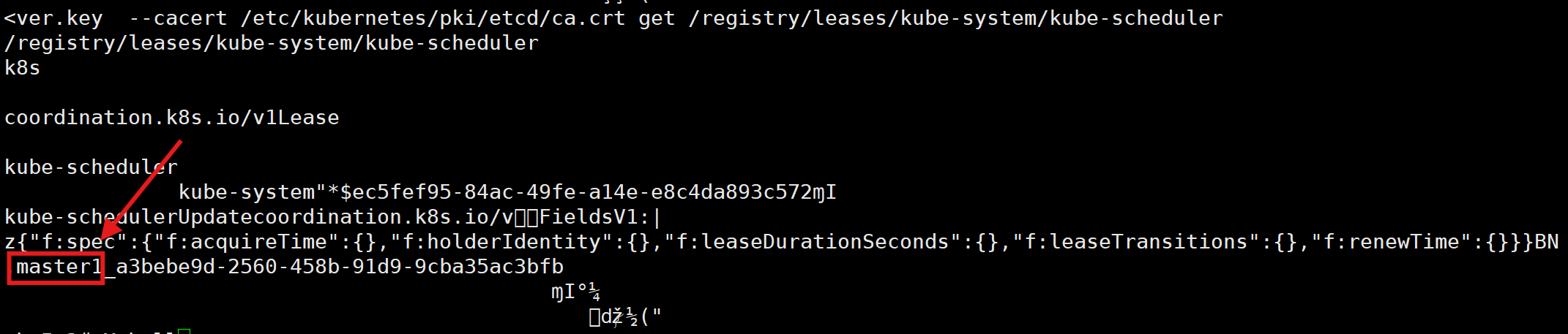 sh-5.2# etcdctl --endpoints https://localhost:2379 --cert /etc/kubernetes/pki/etcd/server.crt --key /etc/kubernetes/pki/etcd/server.key --cacert /etc/kubernetes/pki/etcd/ca.crt get /registry/leases/kube-system/kube-scheduler