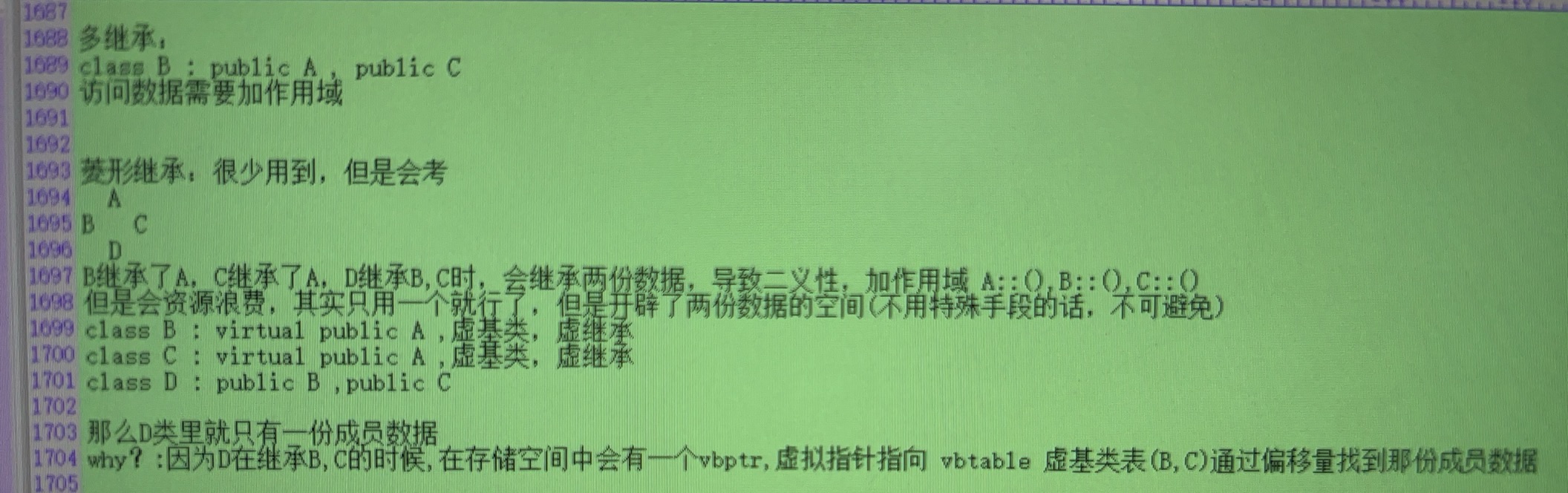 多继承:菱形继承及二义性解决方式: