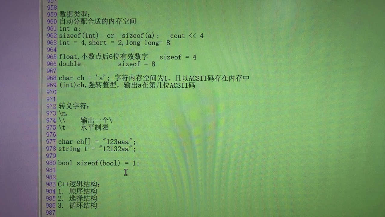 数据类型,转义字符: