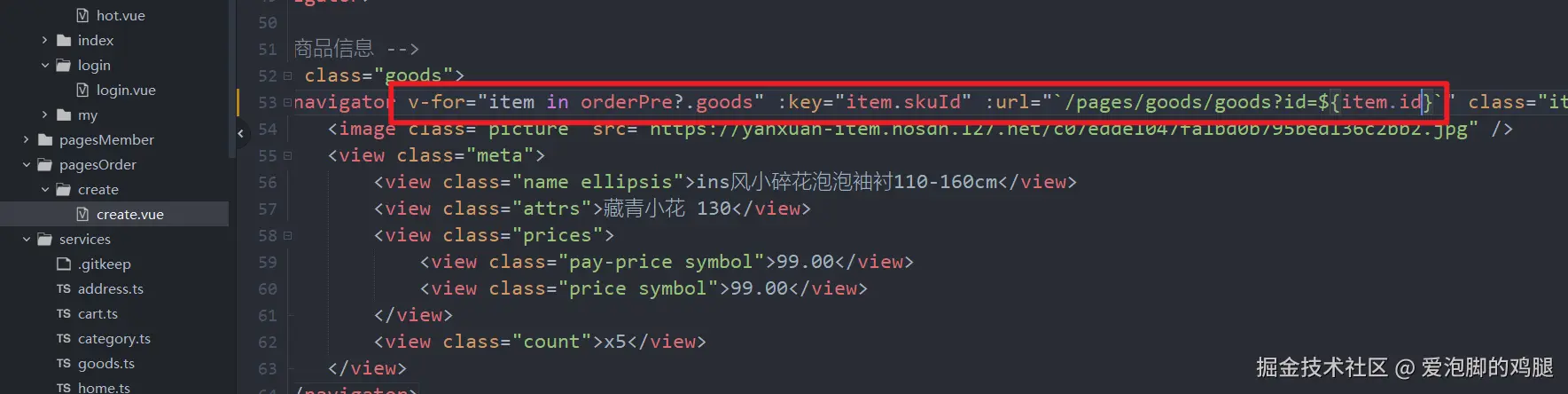 <navigator v-for="item in 2" :key="item" :url="`/pages/goods/goods?id=1`" class="item" hover-class="none">