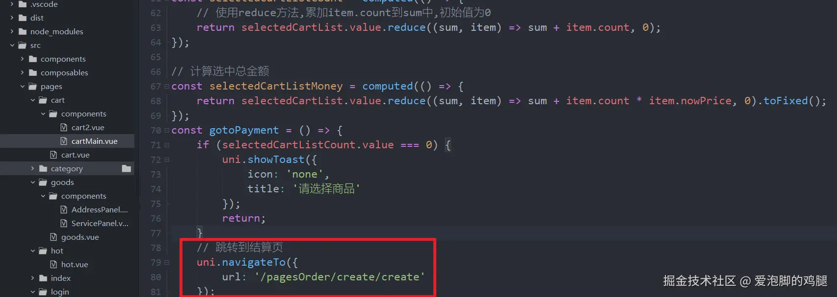 1.1.7 再在先前的购物车代码中添加一行结算代码
