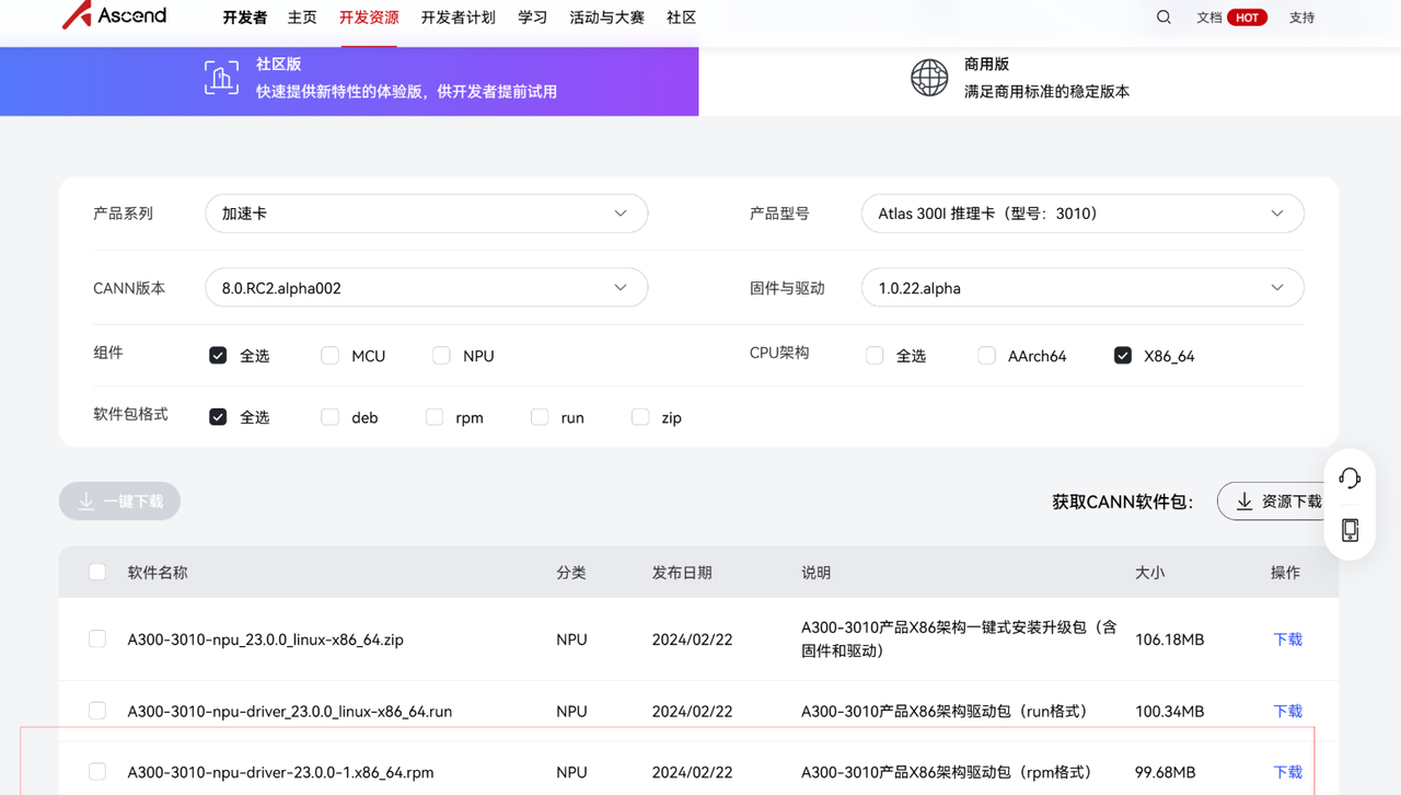 步骤2:下载CANN安装包