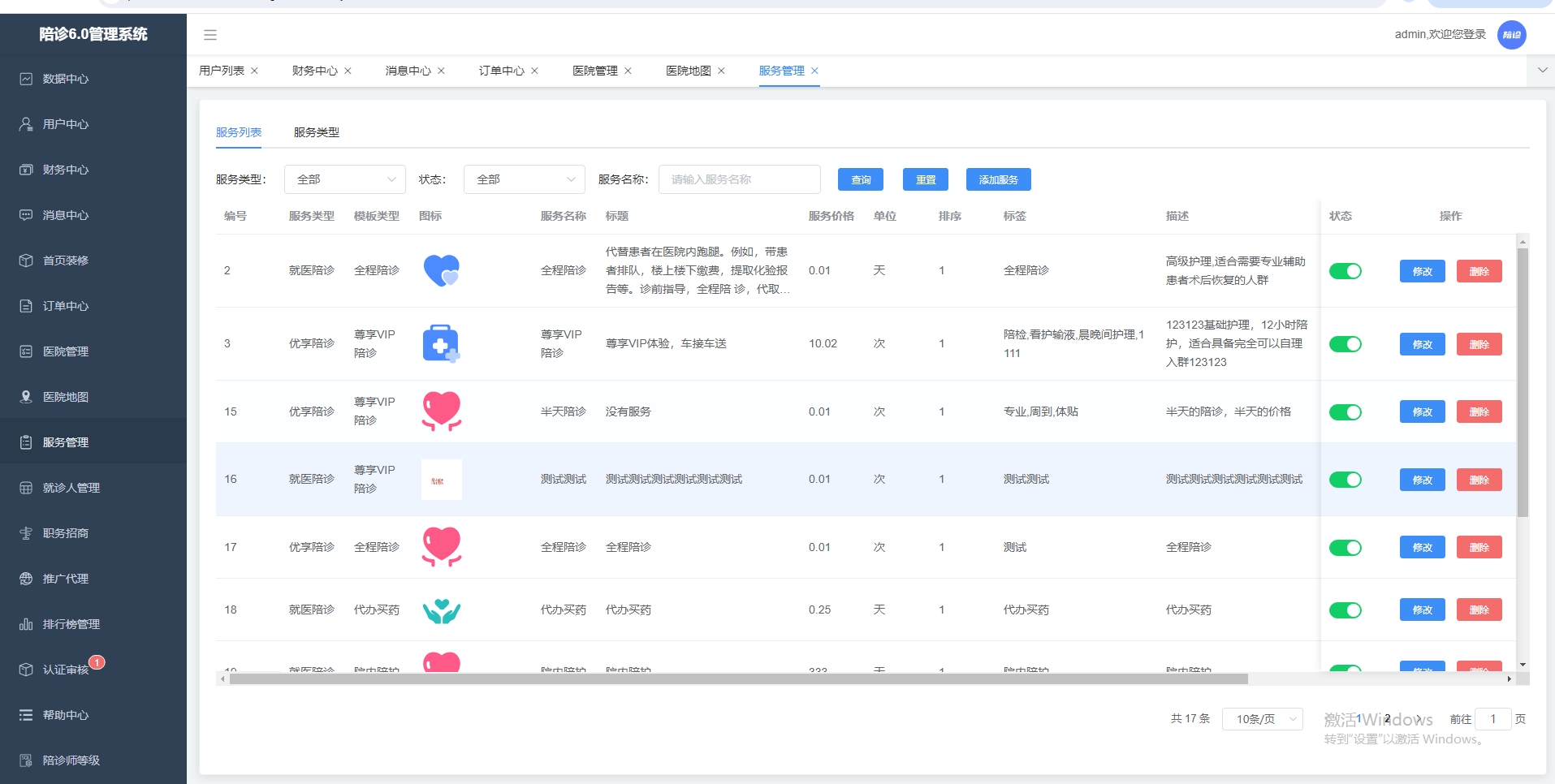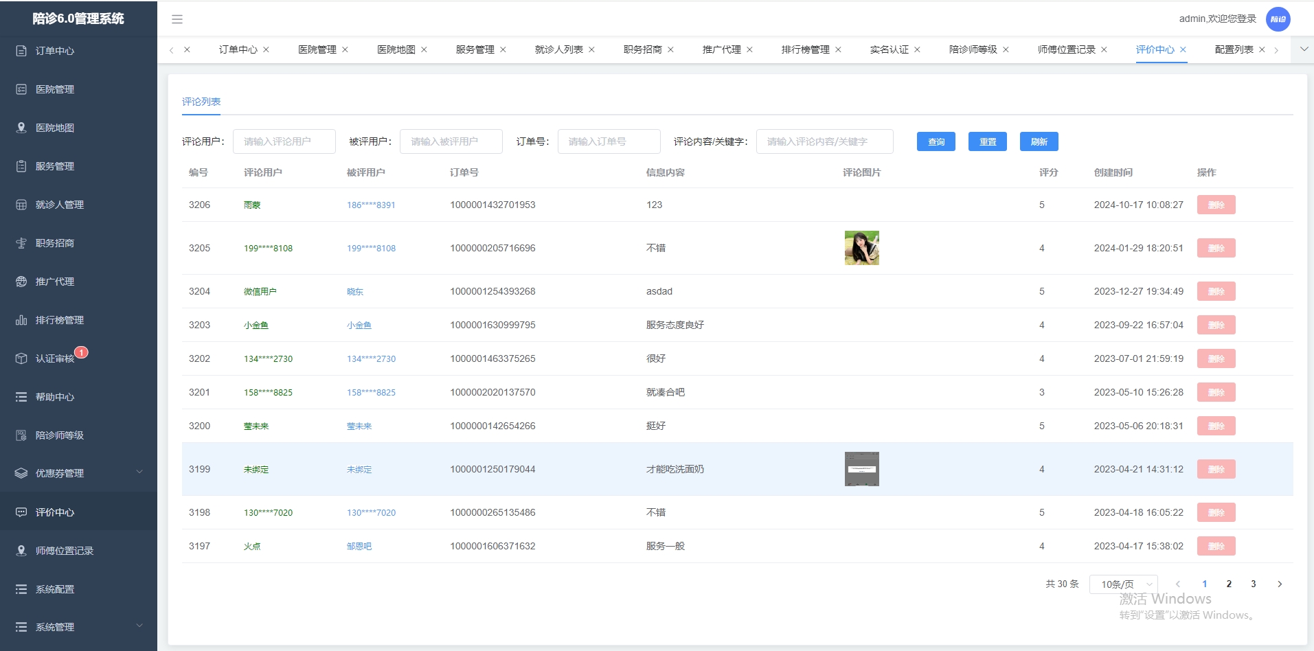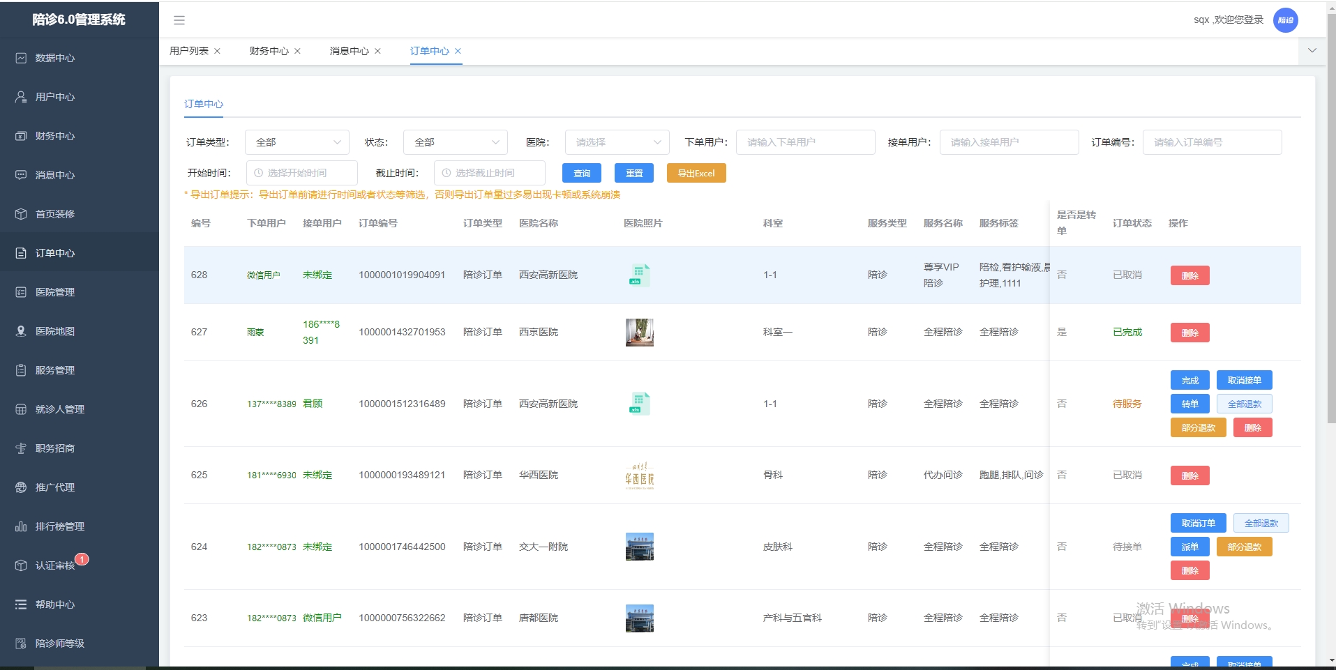 - 陪诊师: 接单,管理日程,与患者沟通,记录服务过程。