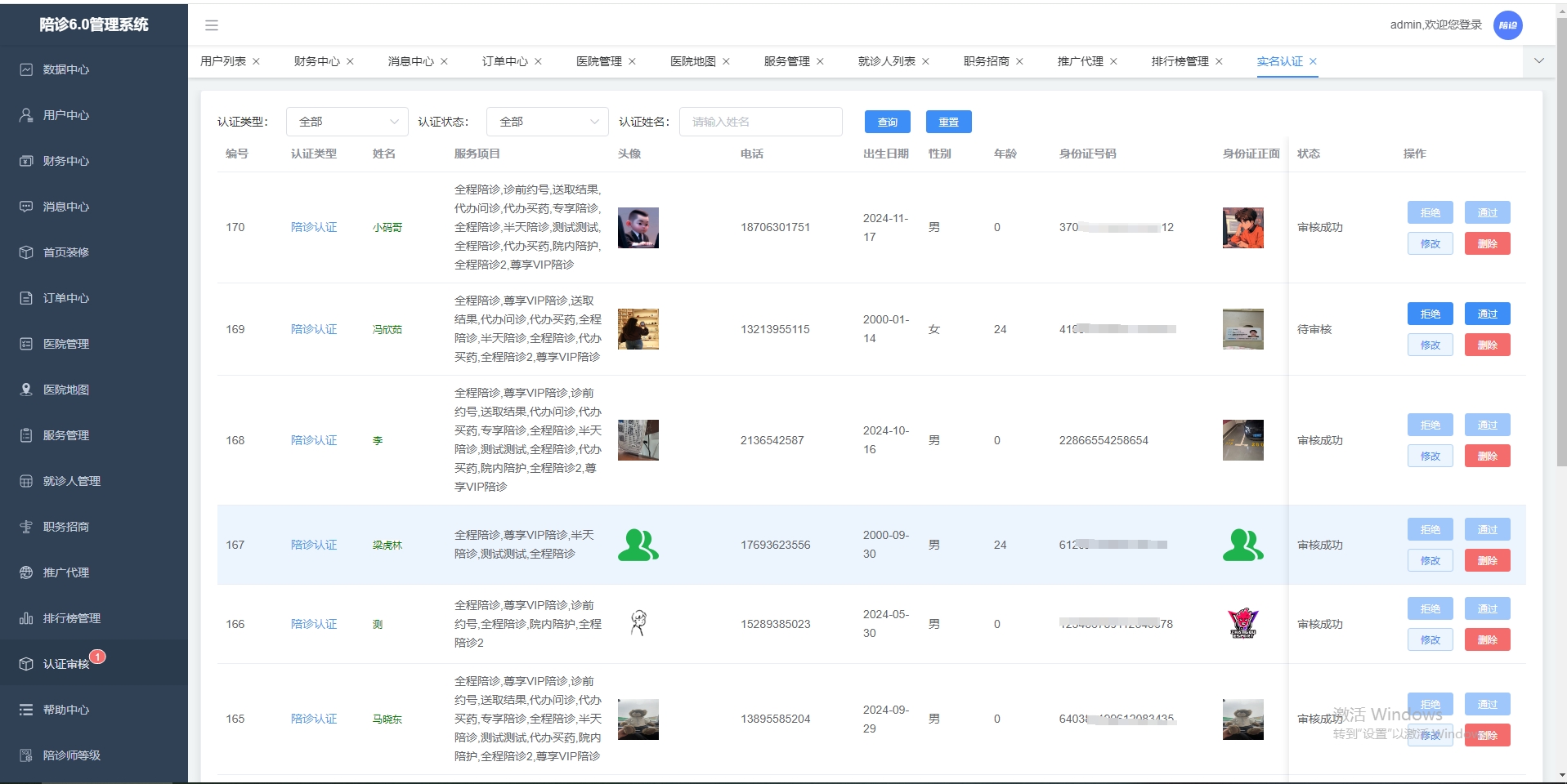 - 平台管理员: 审核陪诊师资质,管理订单,处理投诉,数据统计。