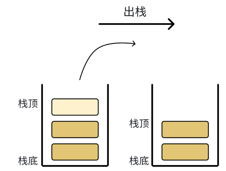 出栈:栈的删除操作叫做出栈。出数据也在栈顶。