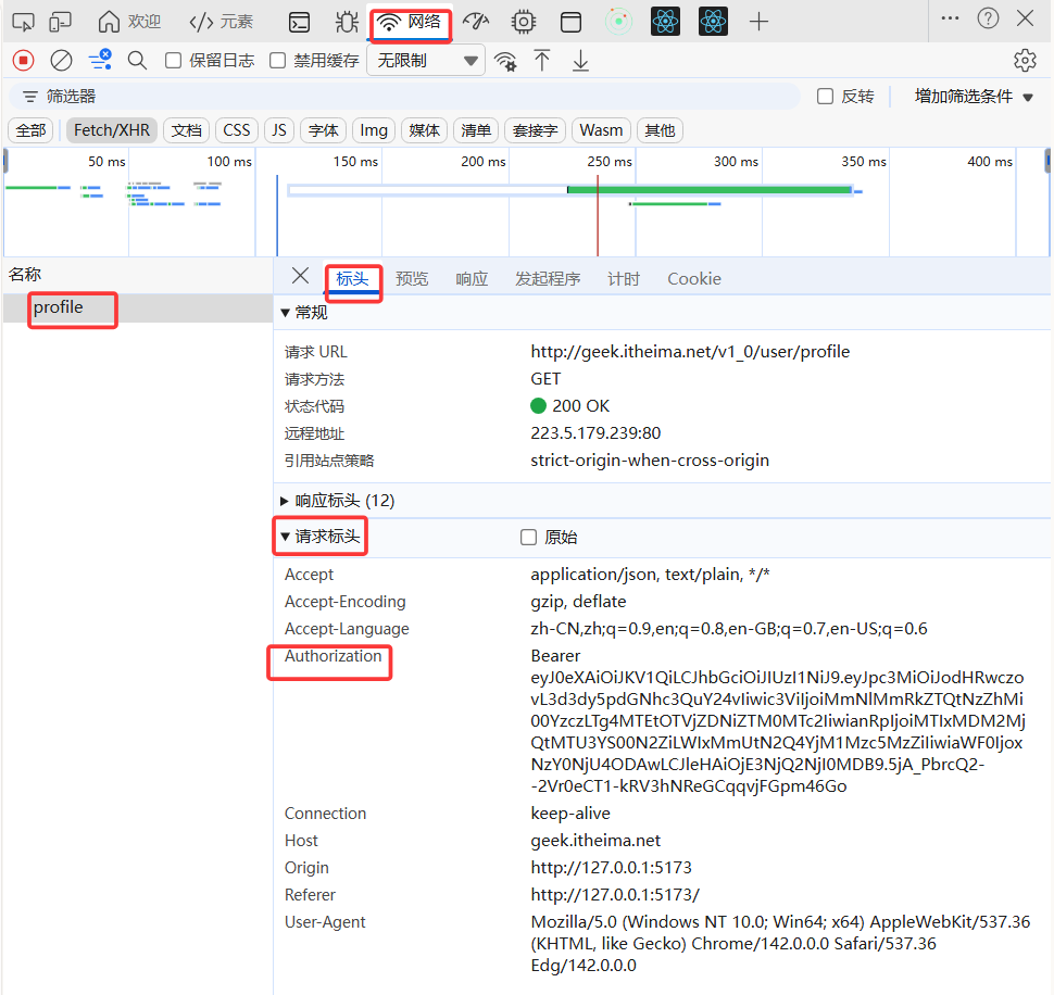 config.headers.Authorization:axios 提供的 "请求头字段"