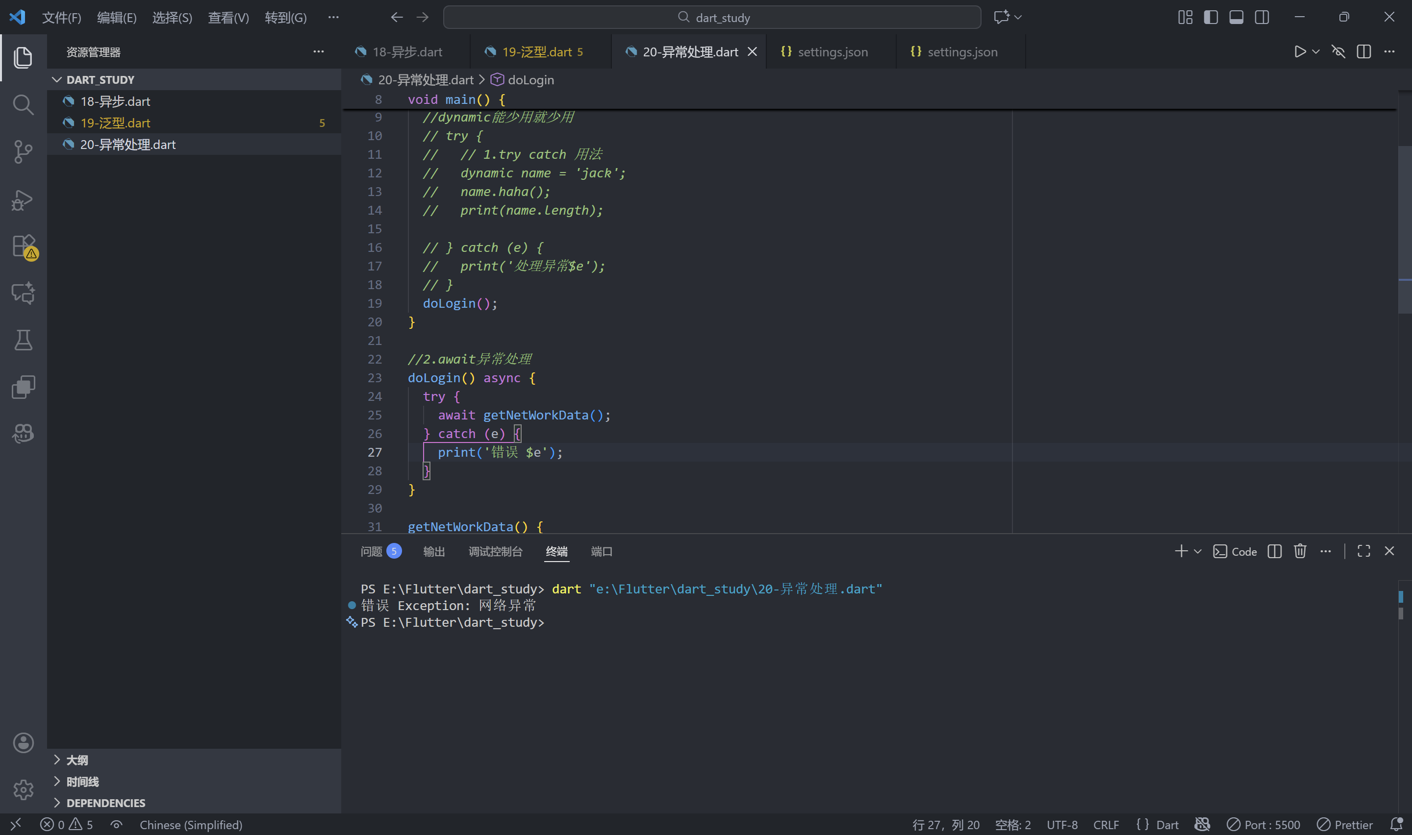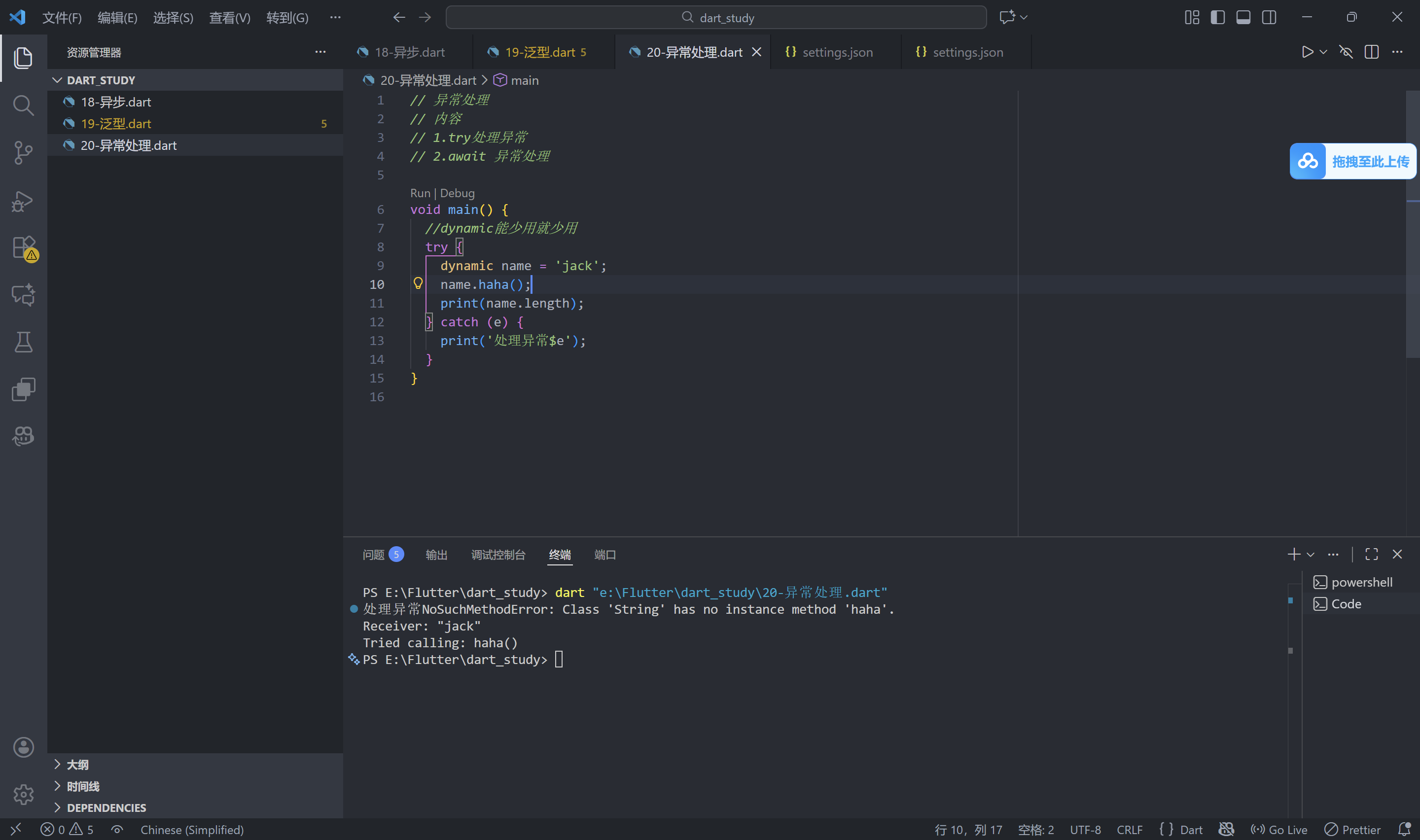 print('处理异常$e');